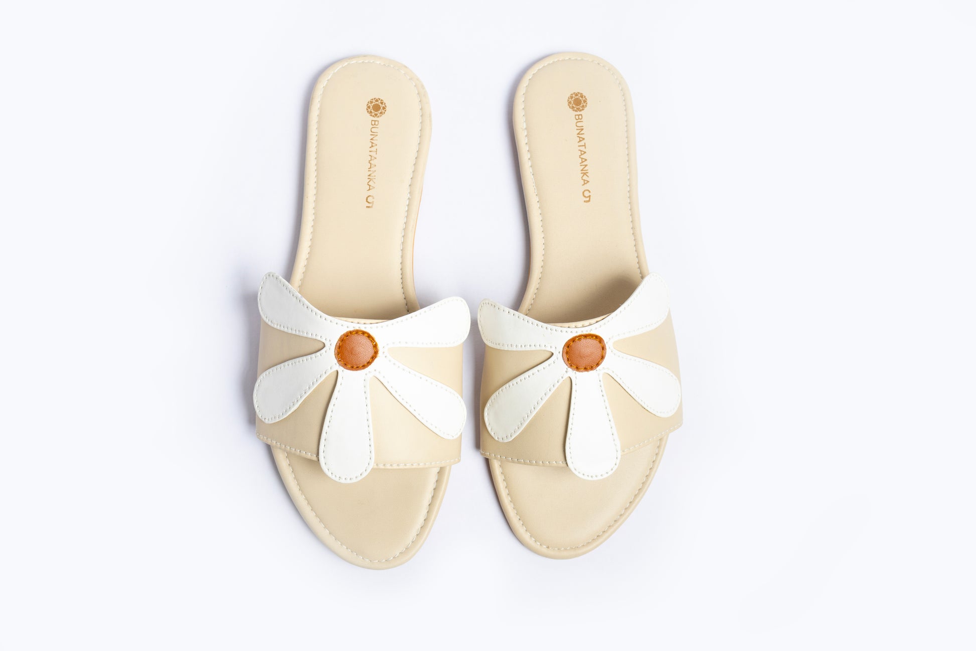 Daisy Bow Sliders - Beige