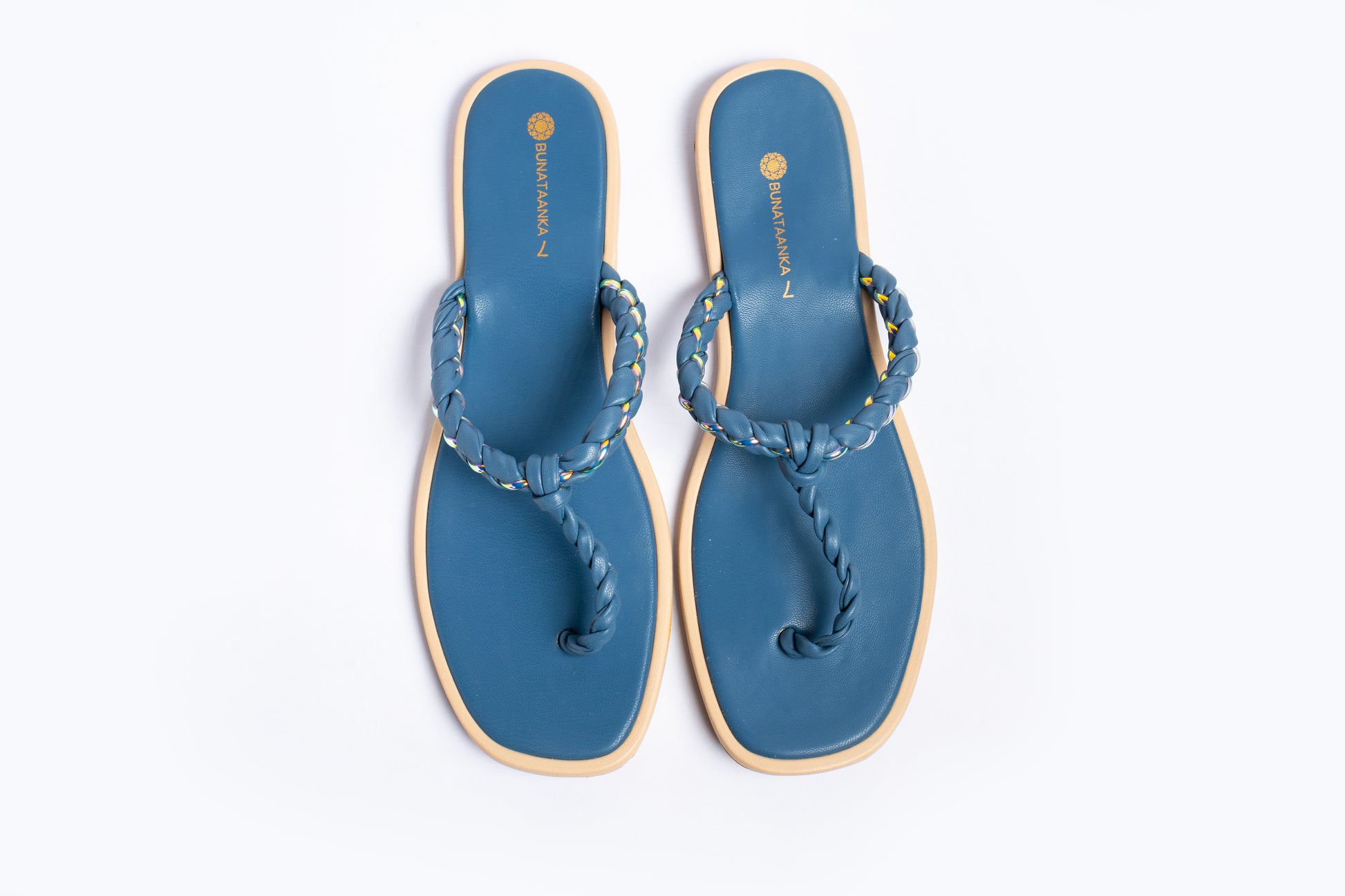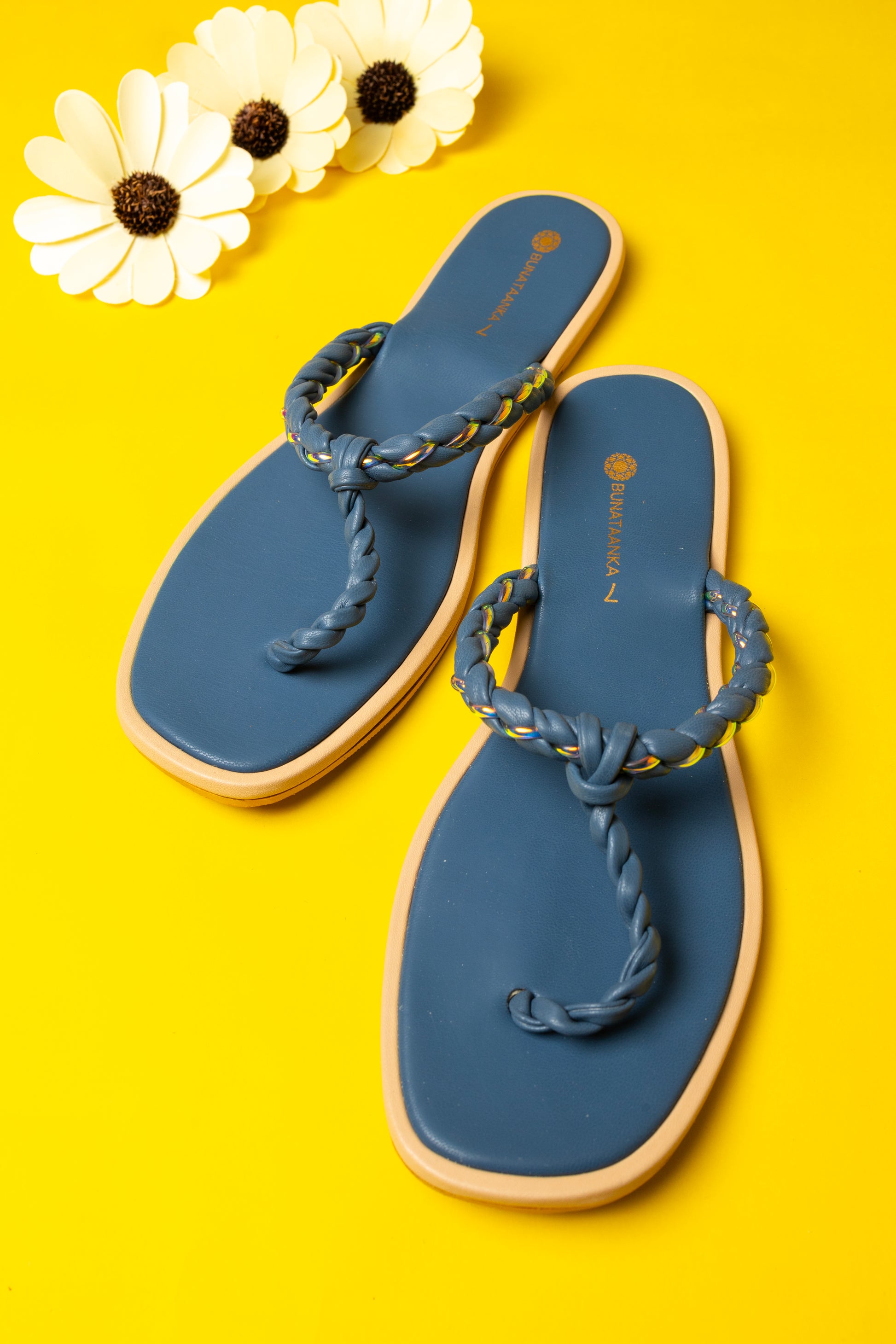 Experience elegance and comfort with the Twist my Way - Blue sliders. Featuring a twisted braided thong design, these sliders offer a refined look while ensuring exceptional comfort for all-day wear. Perfect for those who appreciate subtle sophistication in their casual footwear.