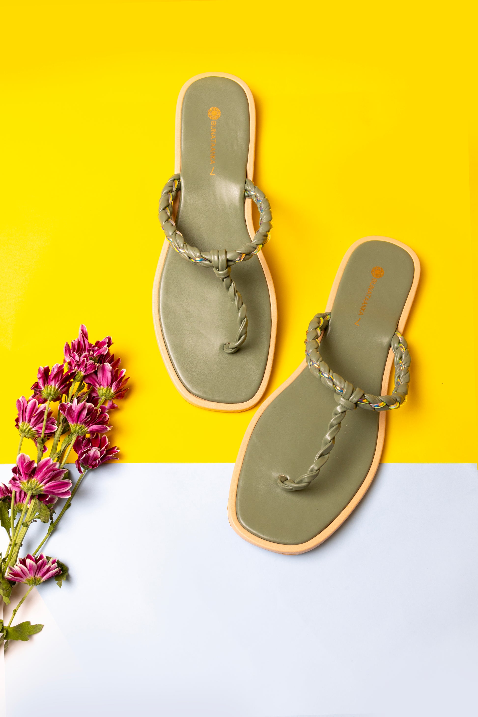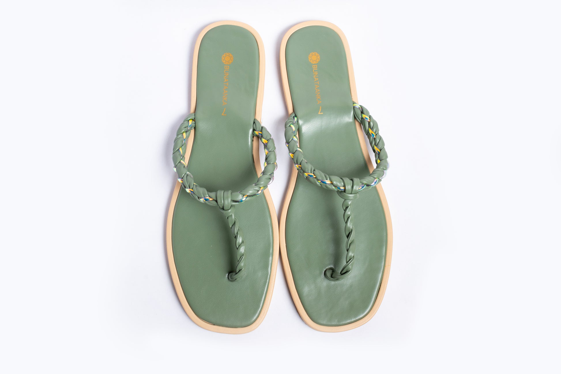 Experience elegance and comfort with the Twist my Way - Green sliders. Featuring a twisted braided thong design, these sliders offer a refined look while ensuring exceptional comfort for all-day wear. Perfect for those who appreciate subtle sophistication in their casual footwear.